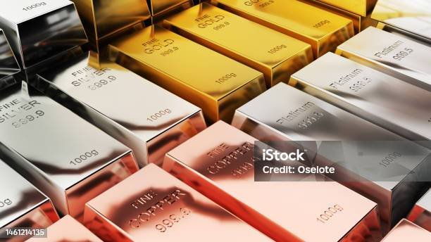 Gold bars,silver,copper,platinum,1000 grams pure metal,business investment and wealth concept.wealth of commodity ,3d rendering