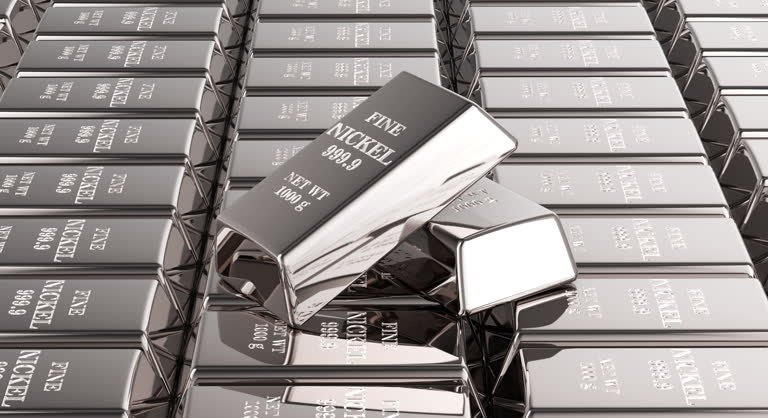 Nickel ingots background, rotation animation, seamlessly loopable. 3D rendering